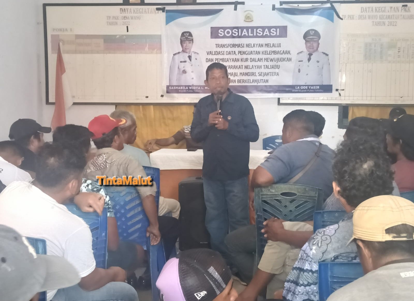 TALIABU,TINTAMALUT–// Pemerintah Daerah Kabupaten Pulau Taliabu, Melalui Dinas Perikanan, Ismail Tiwu Telah menggelar Kegiatan Dalam rangka mendorong transformasi sektor perikanan melalui sosialisasi bertajuk Transformasi Nelayan melalui Validasi Data, Penguatan Kelembagaan, dan Pembiayaan Kredit Usaha Rakyat(KUR). Kegiatan ini menjadi bagian dari upaya strategis dalam mewujudkan masyarakat nelayan yang maju, mandiri, sejahtera, dan berkelanjutan.