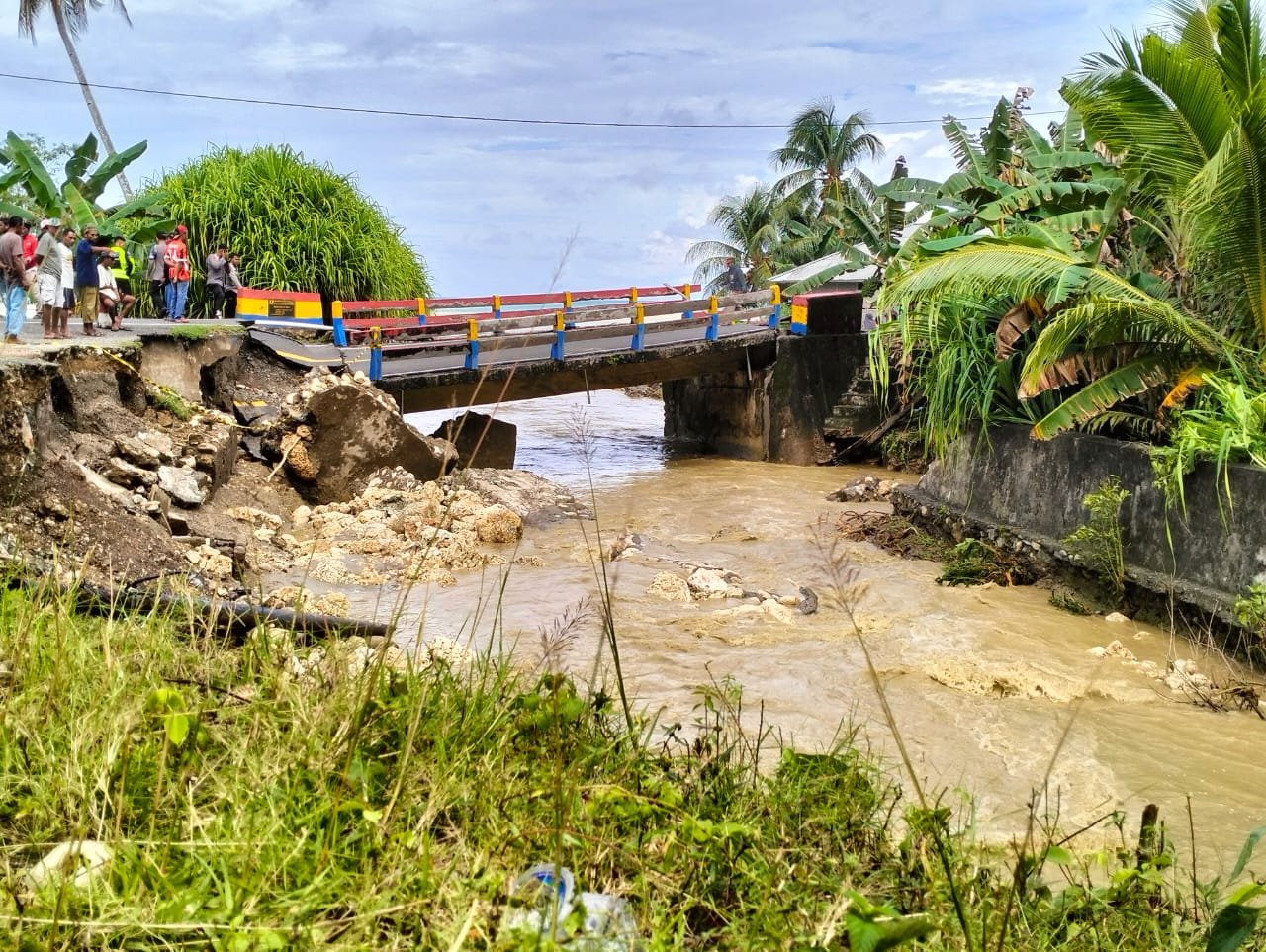 Samsudin langsung turun ke lapangan untuk memantau jembatan Wai Bega yang ambruk akibat hujan deras yang menghantam Kota Sanana sejak Senin (6/10/2025) malam hingga Selasa pagi ini.