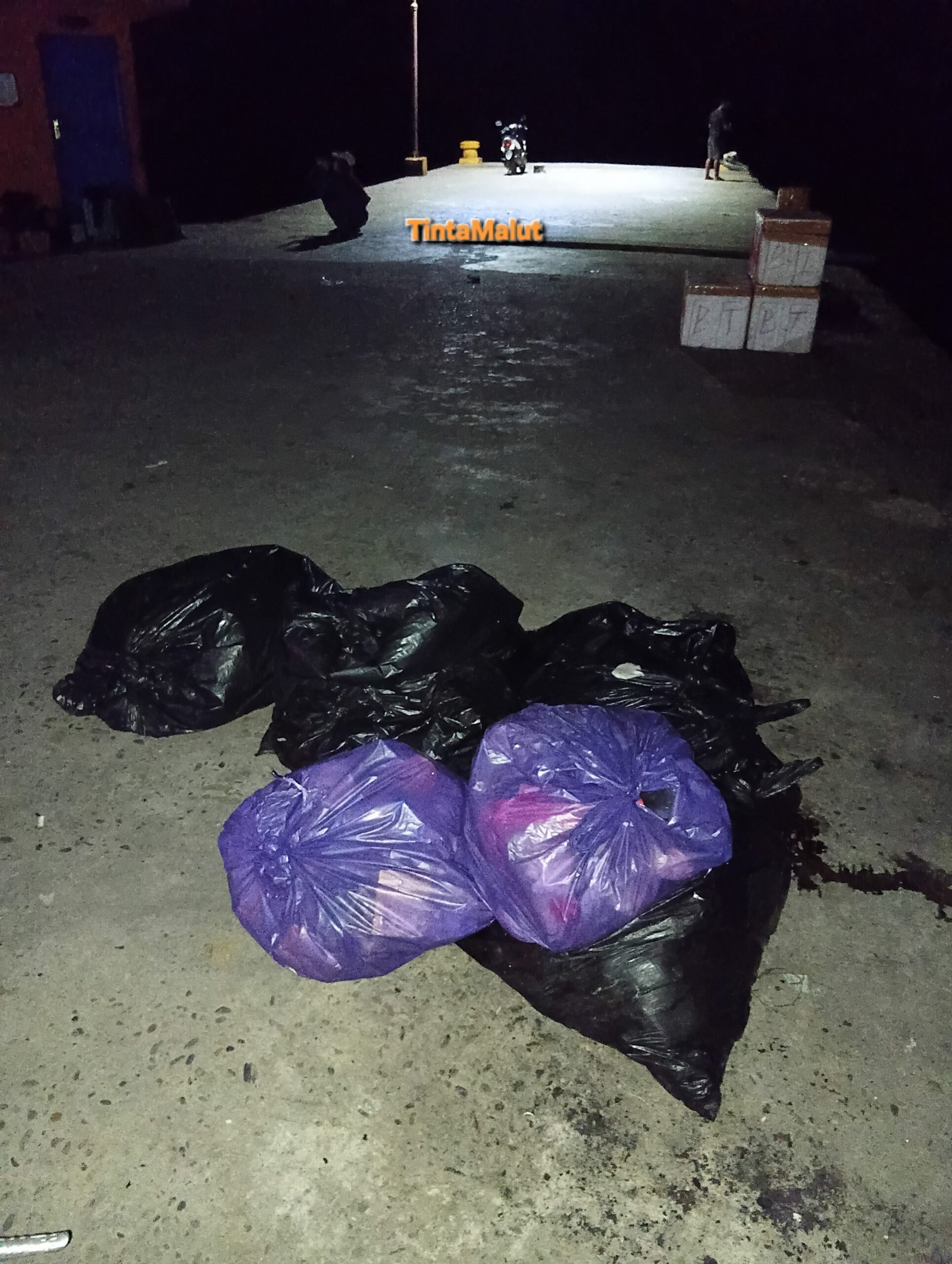 TALIABU, TINTAMALUT—// Tumpukan Sampah Milik Kapal Sabuk 59 yang berceceran di atas Jembatan Pelabuhan Bobong Kabupaten Pulau Taliabu, Hingga saat ini belum di angkat.